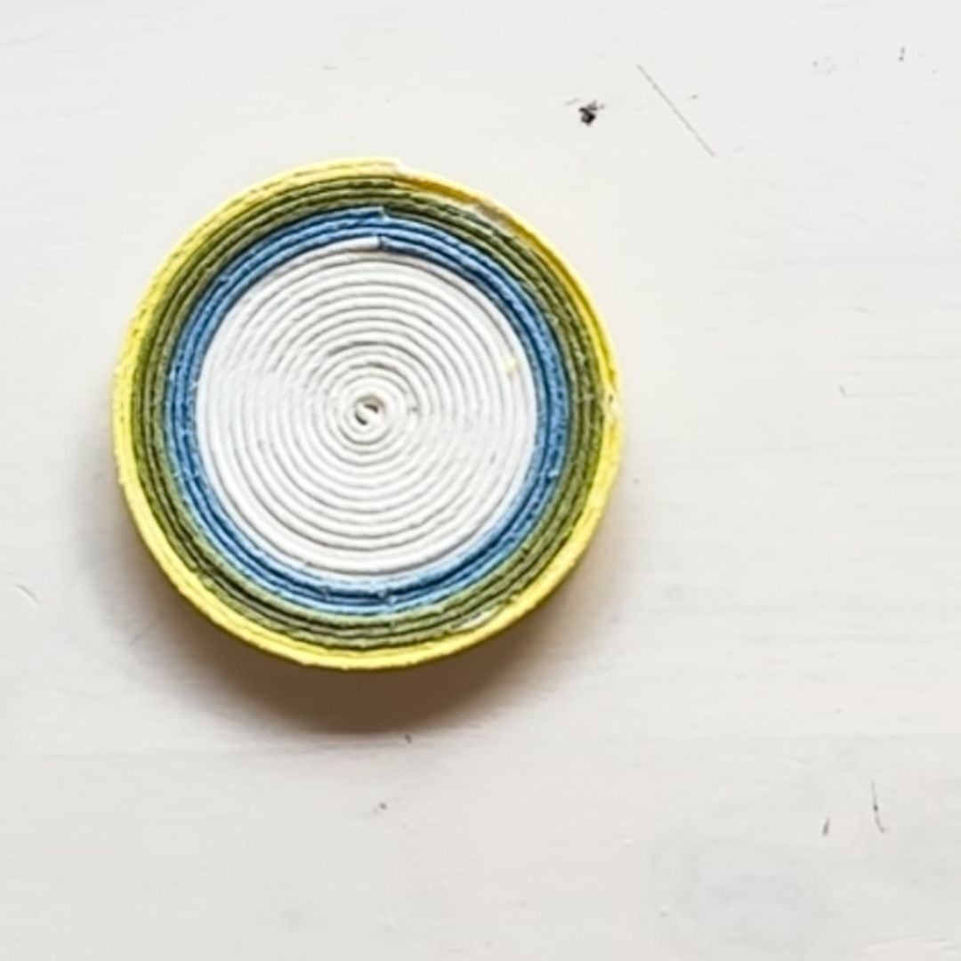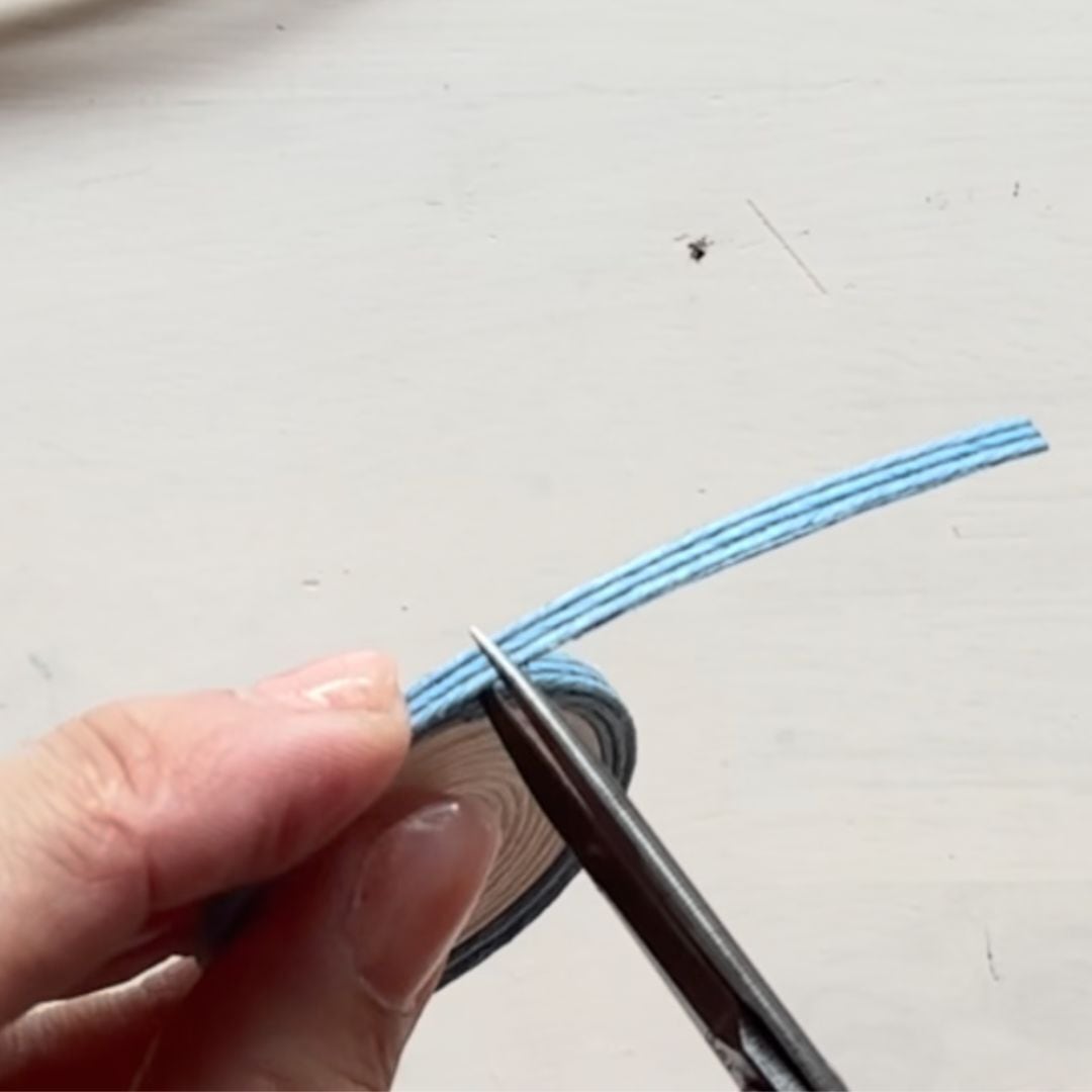 よつだたみをつなげて輪にする部分は、左右を噛ませる位置を間違えないように注意しましょう。目の周りのカラーは、お好きなカラーを使ったりあまりひもを活用してもいいですね。