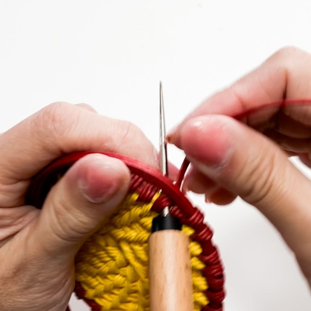 ひもの先端が柔らかくなってしまったらカットしながら進めてください。